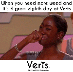 Caption: Oh, you thought an eighth was 3.5 grams? Think again — it’s a Saturday at Verts! 😱 Four gram eighths ALL DAY on ALL TIERS! Come say hi and get some free bud! 💚🌝✨